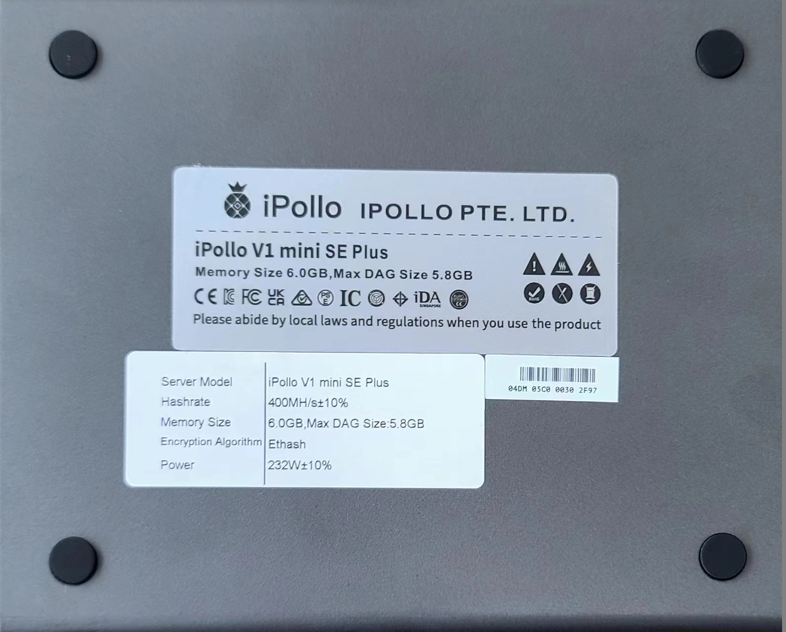 جهاز تعدين بذاكرة 6 جيجا من إيبوللو V1 Mini SE plus واي فاي إصدار 400MH/s 232 وات وما إلى ذلك ZIL مع PSU